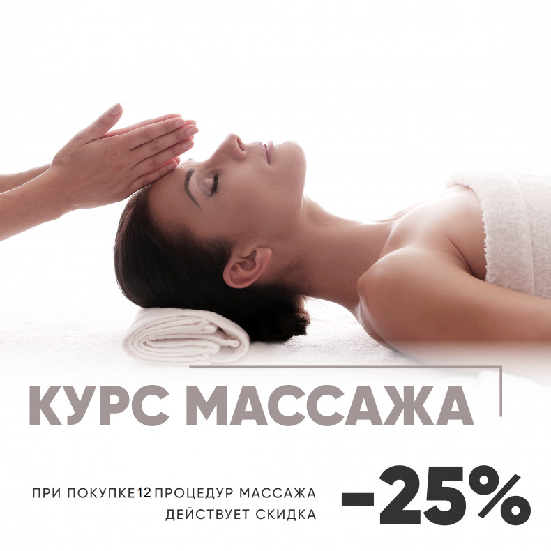 Курс массажа 12 процедур даёт право получить скидку от полной стоимости в размере 25%.