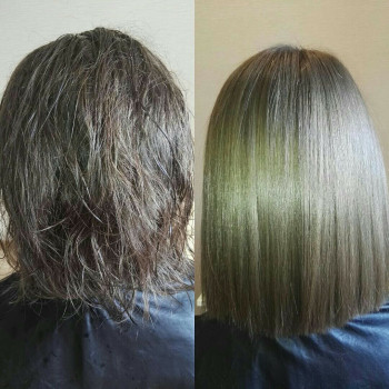 | Кератиновое выпрямление волос | 2500 руб. / 150 мин |